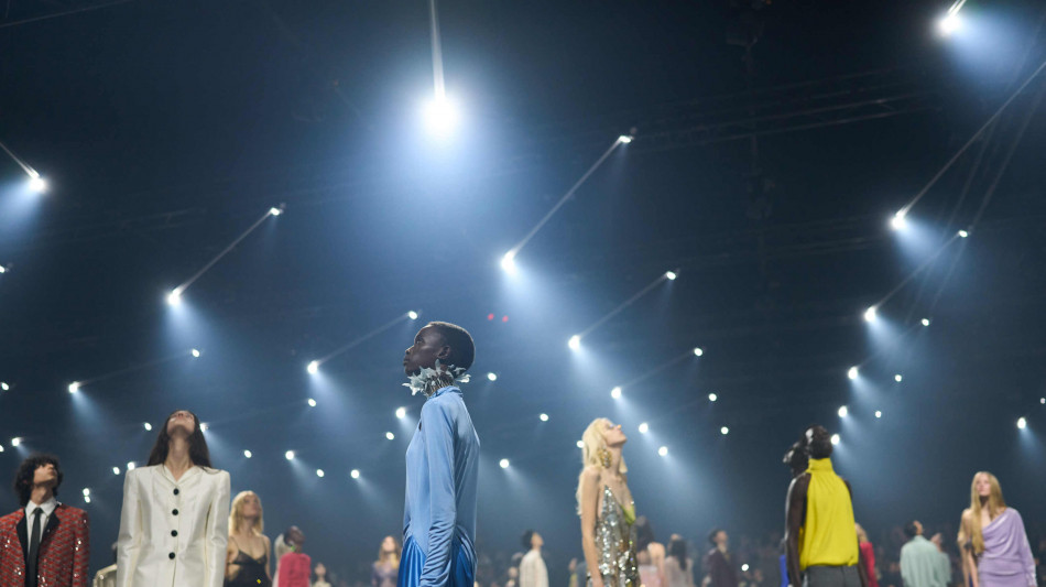 Fireflies, (Lucciole), è il titolo della nuova collezione Primavera/Estate disegnata da Alessandro Michele er Valentino. Un titolo che è una metafora, ma anche un messaggio politico, che parla di tempi di guerra e di luci di speranza. L'invito al defilé riporta un verso della lettera del 1941 che Pier Paolo Pasolini, ancora studente della Facoltà di Lettere di Bologna, scriveva a un suo amico: "Nella notte di cui ti ho parlato, abbiamo visto una quantità immensa di lucciole". Per il direttore creativo, le lucciole che illuminano una passerella dall'atmosfera dark, tradotte in moda sono luci che illuminano gli outfit, con intricati ricami di fili d'oro, ventagli di oro, piume e luccichii disseminati ovunque. Ma le lucciole sono anche una risposta all'omologazione. "Occorre dunque disarmare gli occhi - scrive infatti lo stilista in una nota - e riaccendere lo sguardo. Solo in questo modo potremmo capire come il buio del nostro presente sia in realtà 'intramato' da sottili sciami di lucciole: indizi che annunciano altri mondi a venire, tracce di una bellezza che resiste all'omologazione, epifanie sensibili capaci di riconnetterci all'umano. La moda, in questo senso, può diventare un'alleata preziosa. È suo il compito di illuminare ciò che ama nascondersi, portando in superficie timidi indizi di futuro. È sua la capacità di profanare l'esistente, sprigionando scintille di incanto e segni luminosi carichi di grazia. Si tratta di fugaci bagliori nelle tenebre, costellazioni di lucciole in grado di aprire varchi di possibilità e di nutrire politicamente l'immaginazione". Alessandro Michele accende i suoi abiti di speranza e lo fa illuminando di luccichii i pantaloni ampi ma non ampissimi, le giacche tailoring e gli abiti impalpabili, le jumpsuit e gli shorts, i tailleur bon ton, e gli abiti fluidi, le bluse floreali e le scarpe scultoree. Lo fa utilizzando i contrasti dei materiali, accostando il velluto a sete leggerissime, istoriando con i cristalli l'etereo chiffon. Lo fa utilizzando abbinamenti cromatici di colori caldi e freddi come il verde acido e il grigio sartoriale, oppure il giallo girasole e il viola. La collezione è fatta di capi dai volumi misurati. E' un invito a leggere anche in tempi bui, come quelli che stiamo vivendo, attraverso le luci di una bellezza a bassa intensità. Come la resistenza al Fascismo ai tempi della lettera di Pasolini, così come ricorda Alessandro Michele, oggi c'è la necessità di risvegliare lo sguardo disarmando gli occhi. La sfilata diventa dunque un invito alla resistenza della bellezza oltre la standardizzazione, un nutrimento per l'immaginazione.