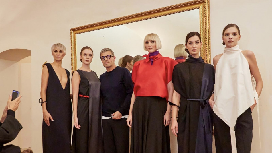 Il cerchio, il triangolo, il quadrato, sono le forme geometriche pure che riportano all'infanzia di Vittorio Camaiani, lo stilista di San Benedetto del Tronto che ha svelato la sua nuova collezione Autunno/Inverno 25-26, intitolata "La mia Strada", nella settecentesca Coffee House di Palazzo Colonna. Il defilè si è svolto in concomitanza della mostra "Seduzioni, quando il metallo diventa desiderio", le sculture di Andrea Borga in dialogo con gli abiti di 13 maison, in presenza della principessa Jeanne Colonna, e con la presentazione di Elena Parmegiani, direttrice eventi della Coffee Hause di Palazzo Colonna e della Galleria del Cardinale. Come in un viaggio surreale a ritroso nel tempo che ci riporta allo sguardo dell'infanzia, la collezione trae spunto dalle forme primarie che impariamo a riconoscere da bambini, il cerchio, il quadrato, il triangolo, unite ai desueti tocchi di surrealismo e futurismo, amati da Camaiani e sempre presenti nelle sue proposte. La collezione accompagna il giorno e la sera attraverso linee rigide ma inaspettatamente in sintonia con le forme del corpo femminile. Gonne e pantaloni sono in tessuti che abbinano la morbidezza del cachemire e della seta e materiali più corposi come le lane e il cotone. Le camicie, cavallo di battaglia di Camaiani, spesso si ricoprono di fantasie geometriche e di pois, ma assumono forme di triangoli d'immaginari aquiloni, o di cerchi schiacciati sulle maniche. Anche le giacche in cachemire hanno una forma arrotondata e sono tagliate asimmetricamente da zip in metallo. I bermuda sembrano uscire da una tela futurista. Blazer e completi pantaloni in lana sono in principe di Galles o in pied de poule. Infine, gli abiti da sera partono dalla forma rigida del rettangolo, ma si ammorbidiscono sul corpo grazie alle cinture strette in vita. Immancabile la tuta per il giorno in lana e in principe di Galles illuminata da satin per le serate leganti. Rettangoli e triangoli anche nelle piccole casacche in duchesse e doppio raso nei color block giallo, verde e rosso traslati su lunghi abiti. La palette cromatica della collezione vira dai colori accesi, anch'essi evocativi dell'infanzia, come il giallo, il rosso e il verde fino ai toni terra del cammello e del marrone e ai blu fino al nero. Accessori. Le calzature realizzate da Lella Baldi per lo stilista sono per il giorno sono modelli flat maschili all'inglese e per la sera sandali con tacchi altissimi. I cappelli, realizzati da Jommi Demetrio, sono baschi nelle nuanches cromatiche della collezione con sfumature degradè e ricamati per la sera.
